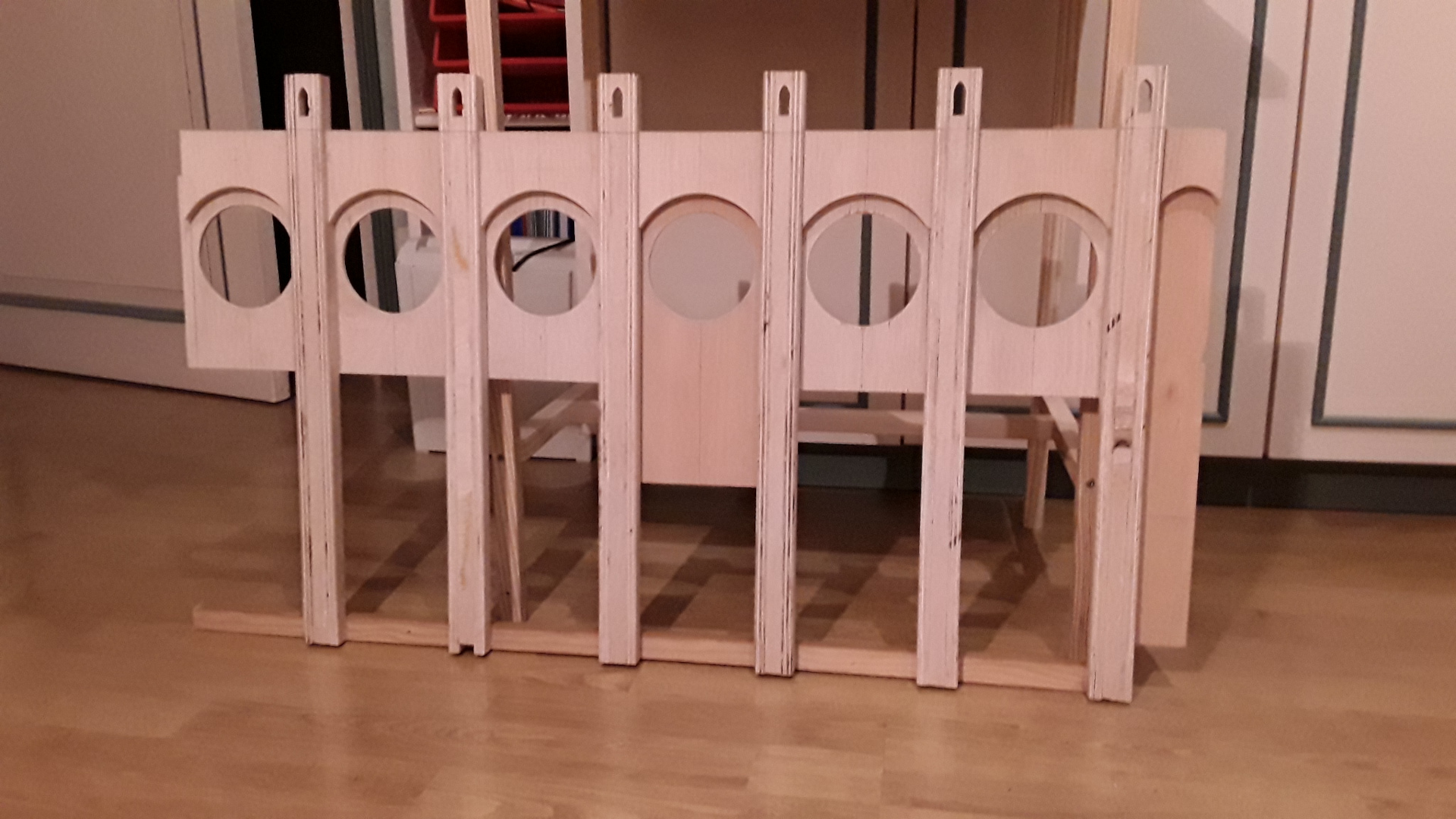 De part ses dimensions et son poids, la maquette est démontable pour pouvoir la transporter facilement. Elle est composée de 5 éléments qui forment le tour de la maquette, d'un toit en deux parties bloquées par une pièce centrale, et d'un socle sur lequel est installé l'éclairage.