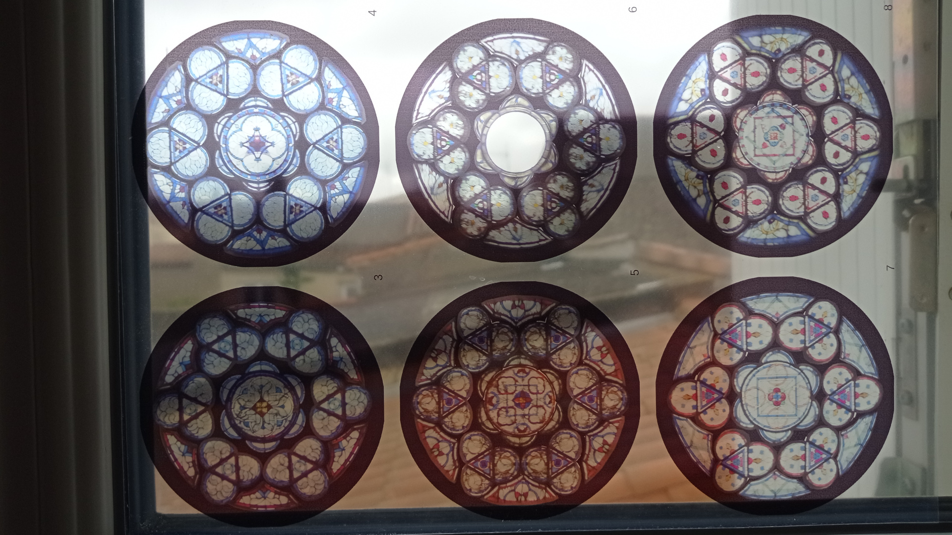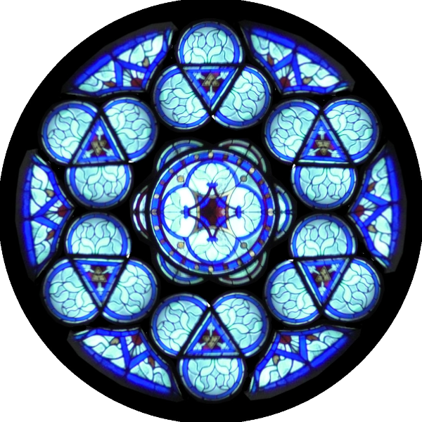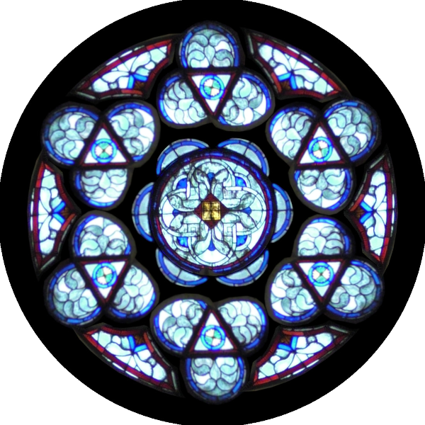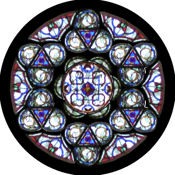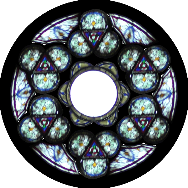 Chaque vitrail, chaque rosace est à sa place réelle. L'ordinateur m'a permi de rectifier les défauts de parallaxe des photos prises à la cathédrale.